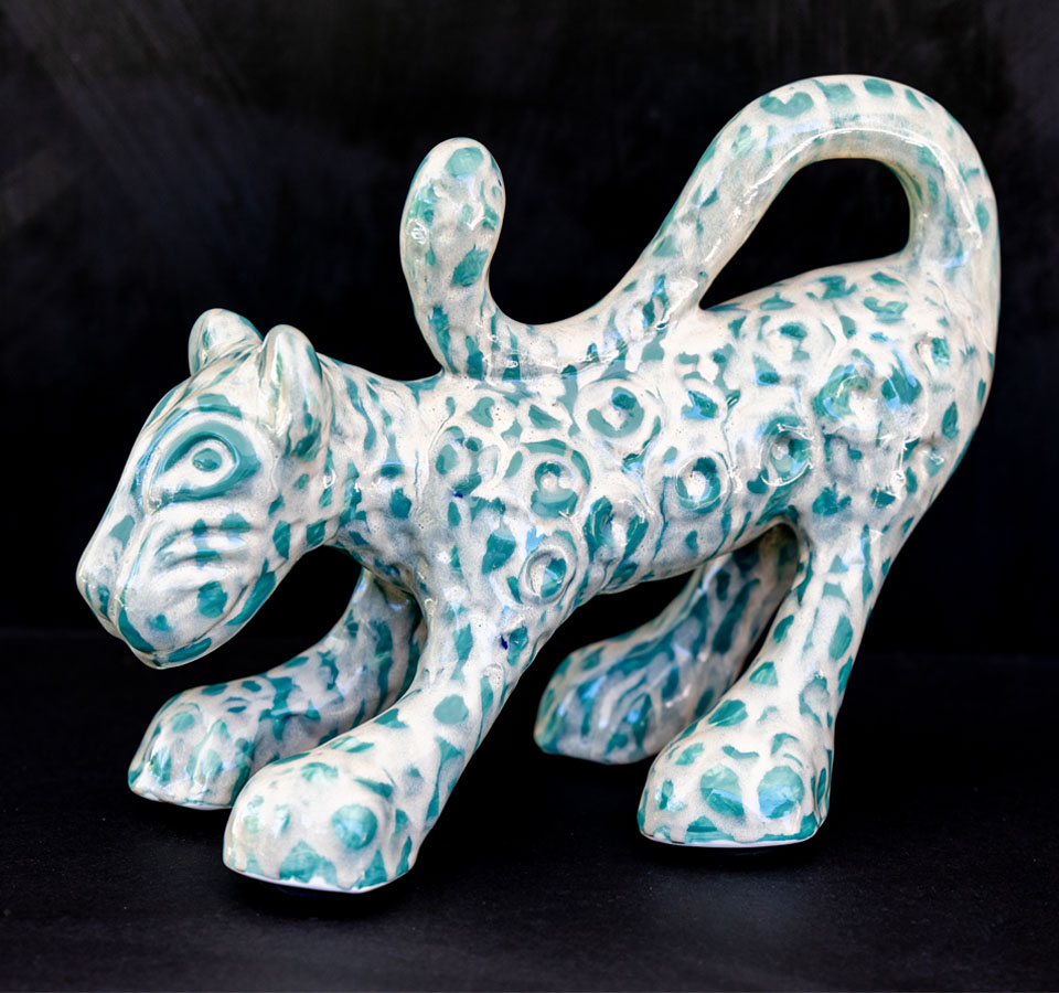 This series of ceramic sculptures is inspired by the elusive nature and patterned camouflage of the African and Cape leopard. They reflect the challenges wild animals face as they adapt to survive amidst human encroachment — navigating an increasingly complex landscape in an effort to avoid conflict or capture.